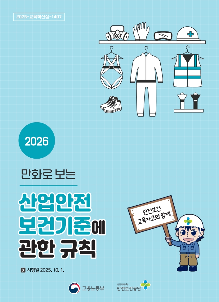 안전보건공단 안전보건자료실에 [2026 만화로 보는 산업안전보건기준에 관한 규칙] 책자가 게시되었으니