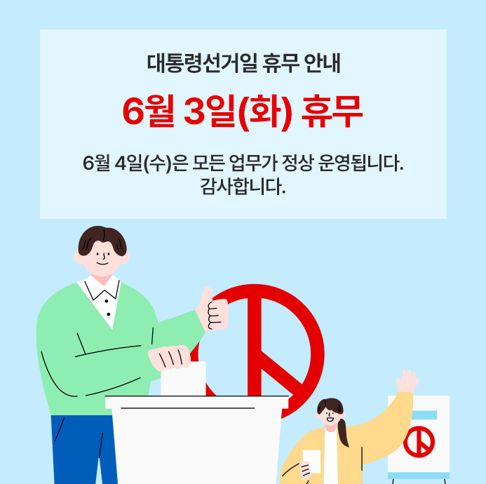 6월 3일(화) 대통령선거일 휴무